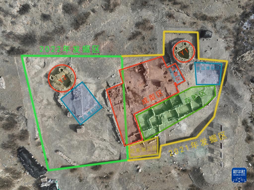 寧夏賀蘭縣蘇峪口西夏瓷窯址2021-2022年發(fā)掘區航拍圖(資料照片)。新華社發(fā)