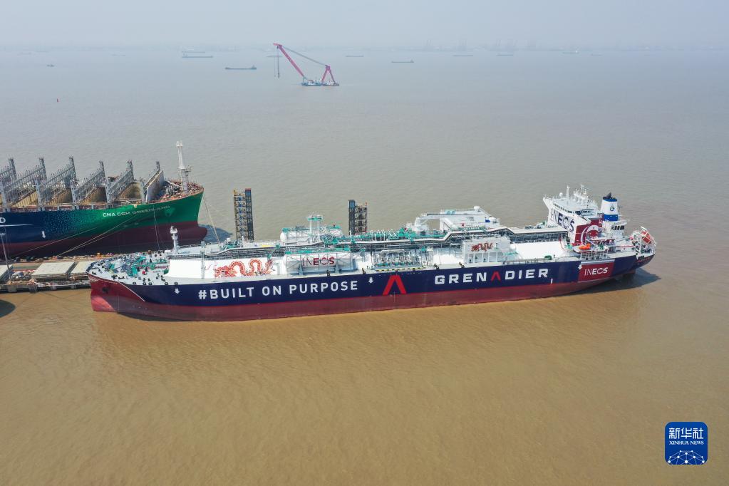 2022年5月16日拍攝的中國船舶集團旗下江南造船建造的99000立方米B型艙超大型乙烷運輸船H2625船(無(wú)人機照片)。新華社記者 丁汀 攝