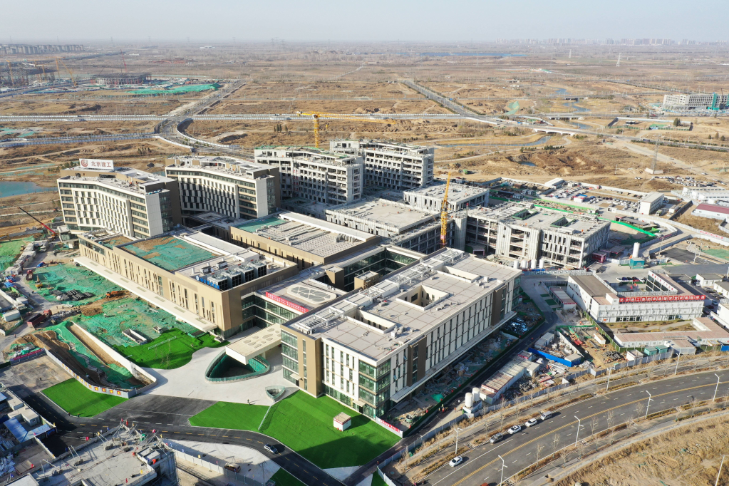 位于雄安新區啟動(dòng)區的雄安宣武醫院項目現場(chǎng)(無(wú)人機照片)。新華社記者朱旭東 攝
