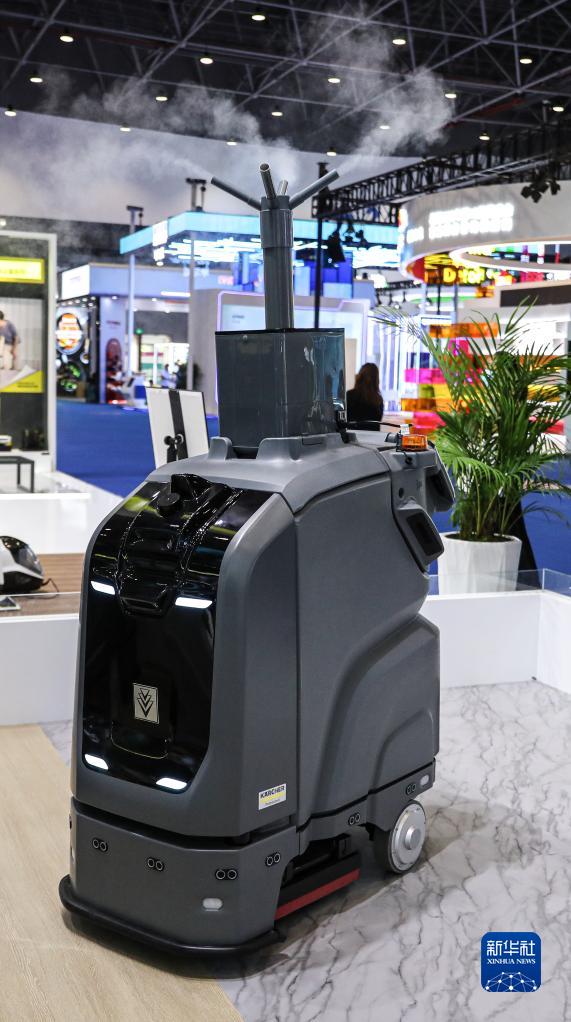 在消博會(huì )德國卡赫展臺拍攝的AI智能清潔機器人(4月10日攝)。新華社記者 蒲曉旭 攝