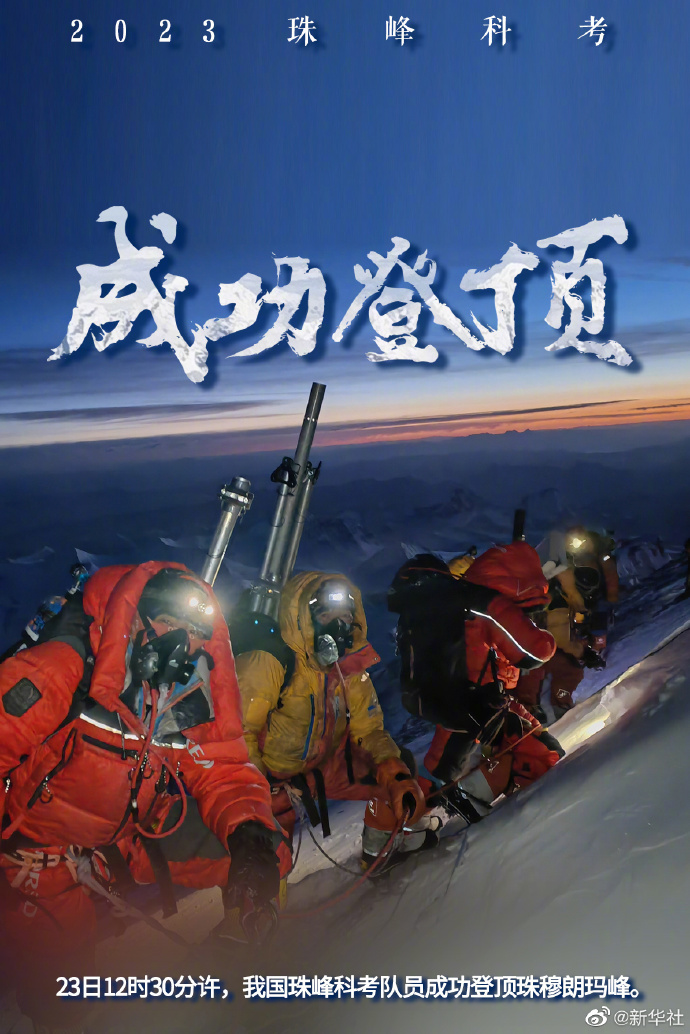 23日12時(shí)30分許,2023年珠峰科考13名科考登頂隊員成功登頂珠穆朗瑪峰。這是我國珠峰科考繼2022年之后,再次突破8000米以上海拔高度。(記者:陳尚才 田金文 聶毅 新華社特約記者拉巴)