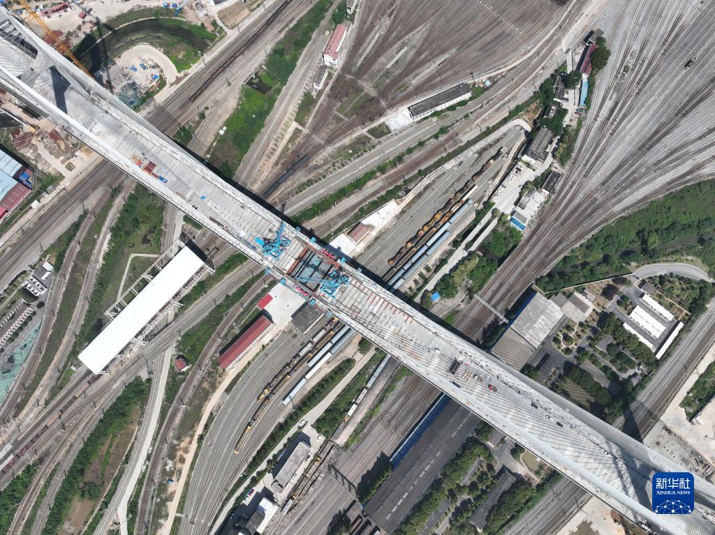 這是合龍后的襄陽(yáng)北編組站大橋(6月8日攝,無(wú)人機照片)。