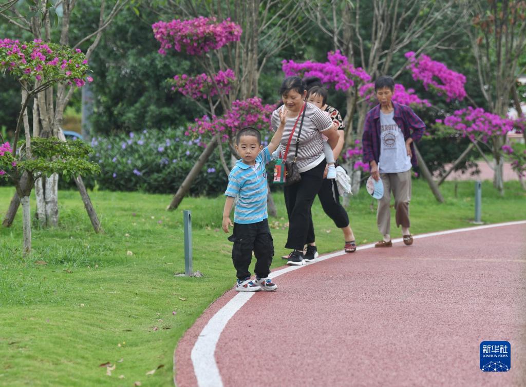 6月1日,瀘州市民在漁子溪濕地公園內游玩。