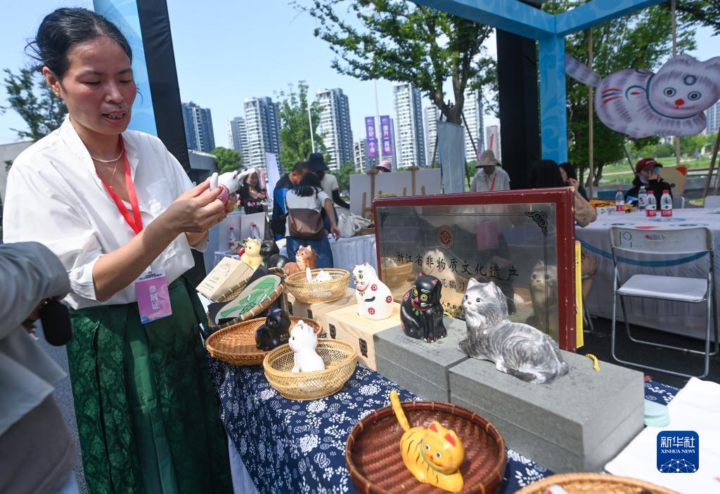 6月9日,活動(dòng)現場(chǎng)展示的浙江省非物質(zhì)文化遺產(chǎn)——半山泥貓。