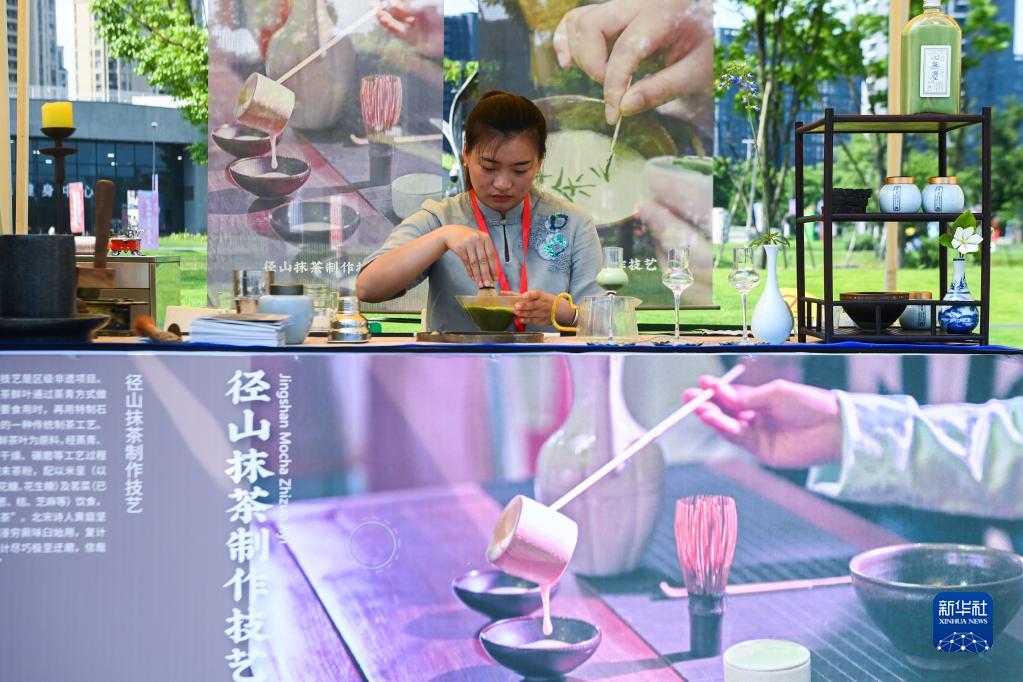 6月9日,活動(dòng)現場(chǎng)展示的徑山抹茶制作技藝。