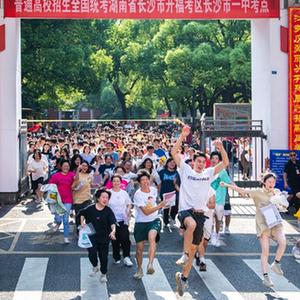 6月9日,在長(cháng)沙市第一中學(xué)考點(diǎn),考生在高考結束后慶祝。