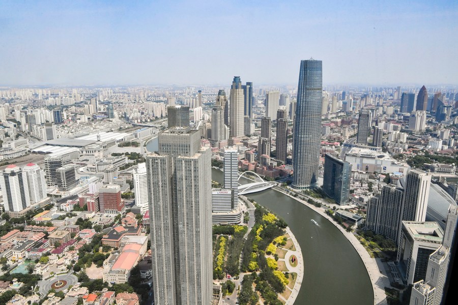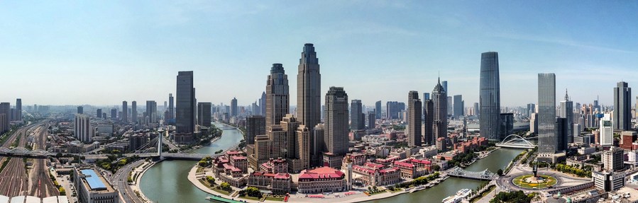 這是6月16日從直升機上拍攝的天津海河沿線(xiàn)城市景觀(guān)。新華社記者 孫凡越 攝