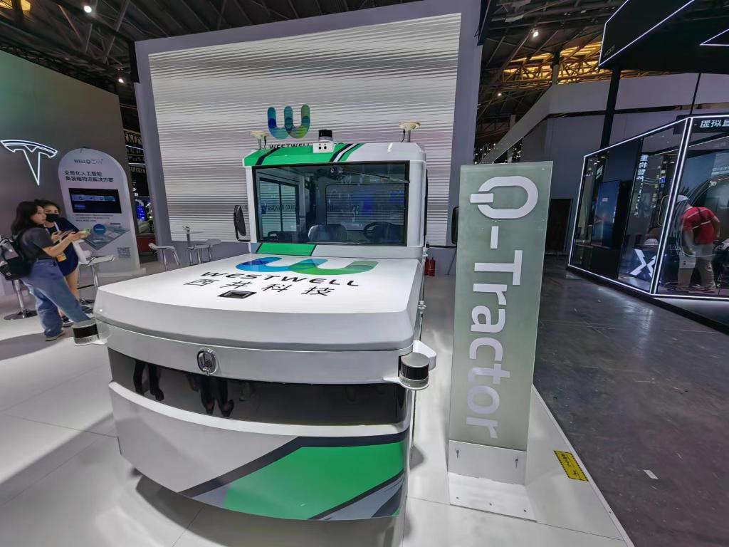 西井科技在2023世界人工智能大會(huì )上,全球首發(fā)首展新能源無(wú)人駕駛牽引車(chē)“Q-Tractor”。新華社記者 龔雯 攝