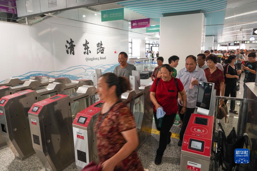 8月26日,在溫州樂(lè )清市清東路站,體驗市民通過(guò)檢票口。新華社發(fā)(蘇巧將 攝)