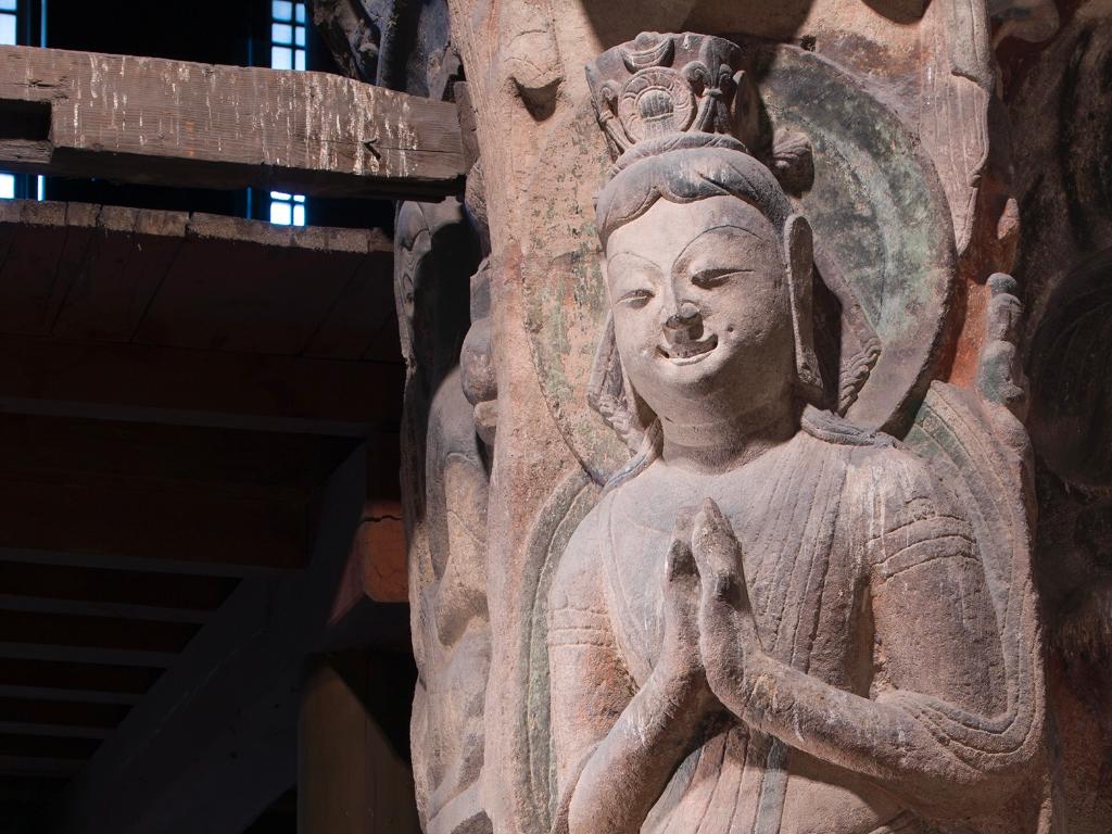 細目低垂、清秀典雅,眉如彎月、舒緩柔和——第5窟閣樓東側第二層的角落里,隱藏著(zhù)一尊“云岡最美佛像”,超然一笑,慈悲盡顯?!斑@樣一尊線(xiàn)條精美流暢的佛陀造像,宛如沉靜的蓮花,微笑中飽含著(zhù)睿智與寬容?!痹茖芯吭嚎脊潘奈镄迯褪腋敝魅畏蛘f(shuō)。