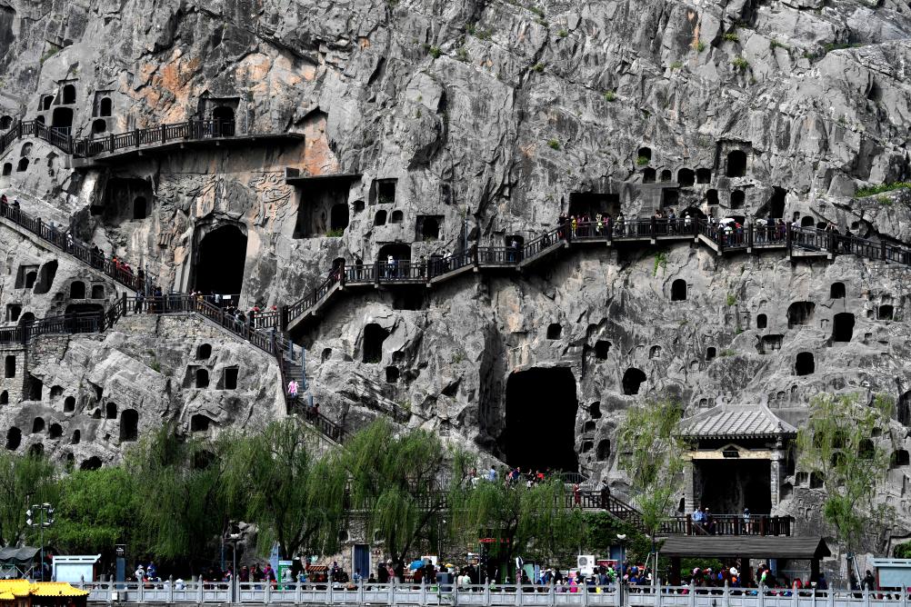 游客在龍門(mén)石窟參觀(guān)游覽。新華社記者 朱祥 攝