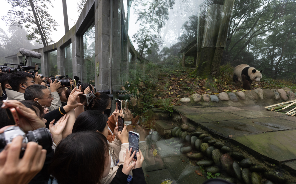 四川雅安碧峰峽,日本大熊貓攝影師高氏貴博在人群中踮起腳尖,和一同來(lái)探望“香香”的日本粉絲們等待著(zhù)。當嬌憨的“香香”現身林間時(shí),他高舉相機、按下快門(mén),成就他拍攝大熊貓的3371天。