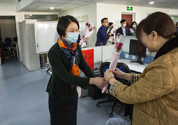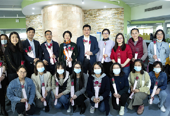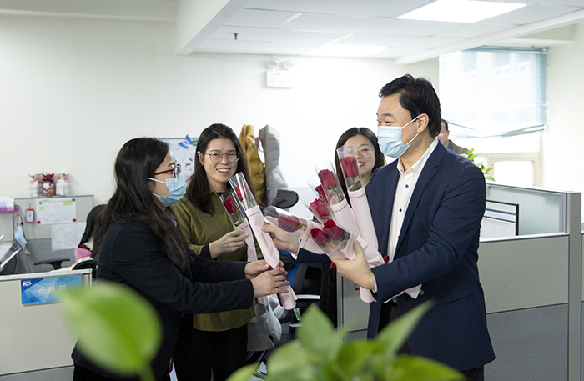 ? 3月8日,舒斌、姍娜同志等公司領(lǐng)導,及工會(huì )、婦委會(huì )向公司女員工送上鮮花等慰問(wèn)品,向大家致以節日問(wèn)候。