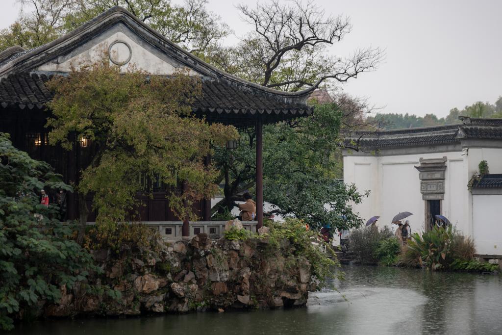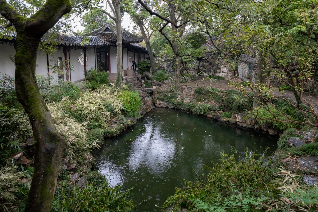 11月的江南水鄉,初冬已至,天氣漸涼。近日清晨,披著(zhù)絲絲煙雨,記者來(lái)到位于江蘇省蘇州市姑蘇區的滄浪亭景區。甫一拐入門(mén)前小街,未遇園門(mén),先見(jiàn)一池碧水環(huán)繞,讓人心曠神怡。