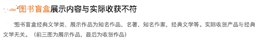 不過(guò),不少消費者反映,購買(mǎi)的“圖書(shū)盲盒”,里面的書(shū)大多質(zhì)量不高,有滯銷(xiāo)書(shū)清庫存之嫌。而且,“圖書(shū)盲盒”大多不接受退換。