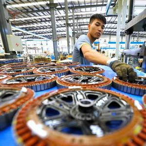 2021年9月9日,河北唐山市蘆臺經(jīng)濟開(kāi)發(fā)區一家電機制造企業(yè),工人在生產(chǎn)線(xiàn)上工作。新華社發(fā)(董軍 攝)