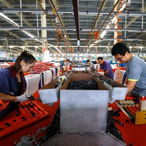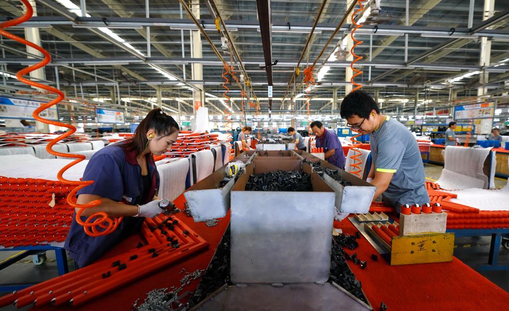 2021年9月9日,唐山市蘆臺經(jīng)濟開(kāi)發(fā)區一家運動(dòng)器材生產(chǎn)企業(yè),工人在車(chē)間工作。新華社發(fā)(董軍 攝)