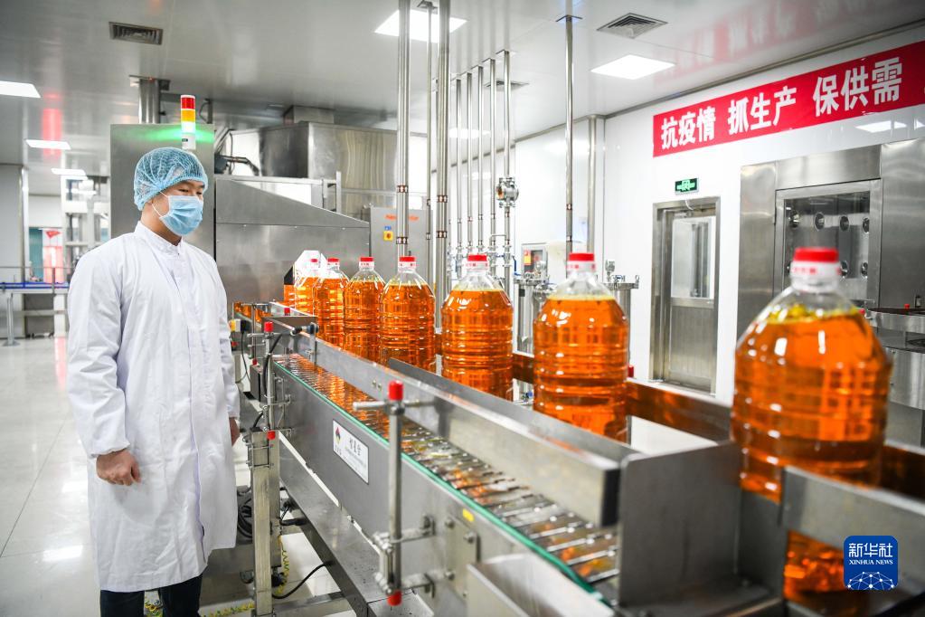 2020年2月20日,工人在益海嘉里(哈爾濱)糧油食品工業(yè)有限公司生產(chǎn)車(chē)間工作。新華社記者 王松 攝