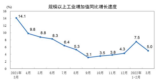 3月份,規模以上工業(yè)增加值同比實(shí)際增長(cháng)5.0%(以下增加值增速均為扣除價(jià)格因素的實(shí)際增長(cháng)率)。從環(huán)比看,3月份,規模以上工業(yè)增加值比上月增長(cháng)0.39%。一季度,規模以上工業(yè)增加值同比增長(cháng)6.5%。