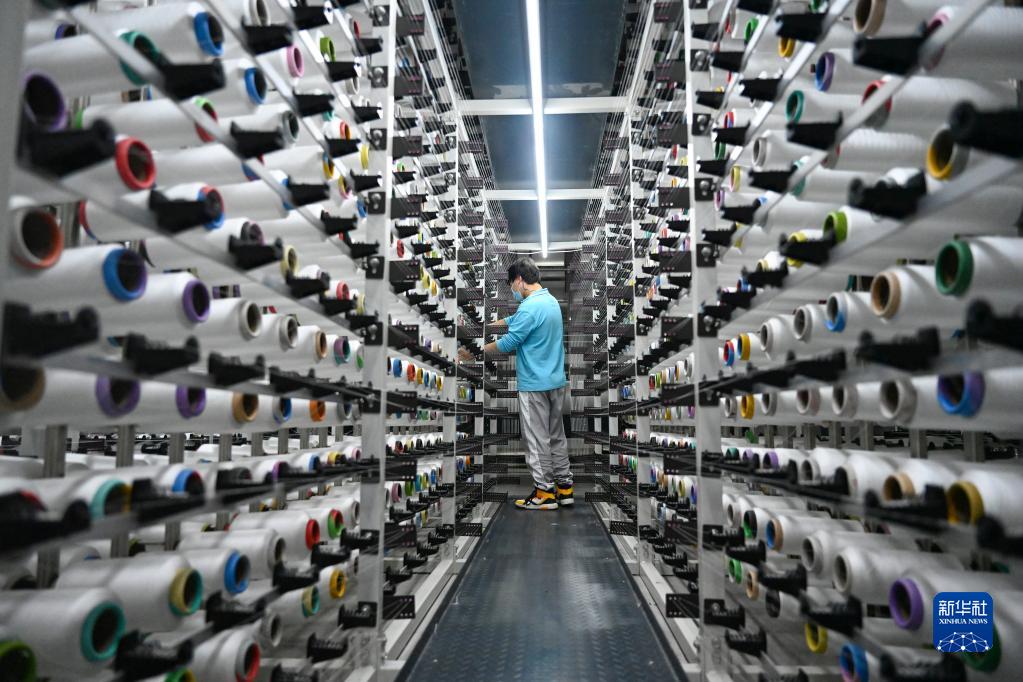 4月12日,在福建泉州石獅市的一家紡織企業(yè),工人在工廠(chǎng)里忙碌。新華社發(fā)(周義攝)