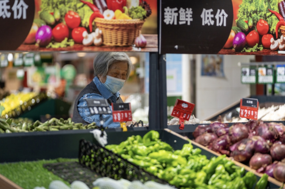 4月11日,消費者在南京市一家超市內選購蔬菜。 新華社發(fā)(杜懿攝)