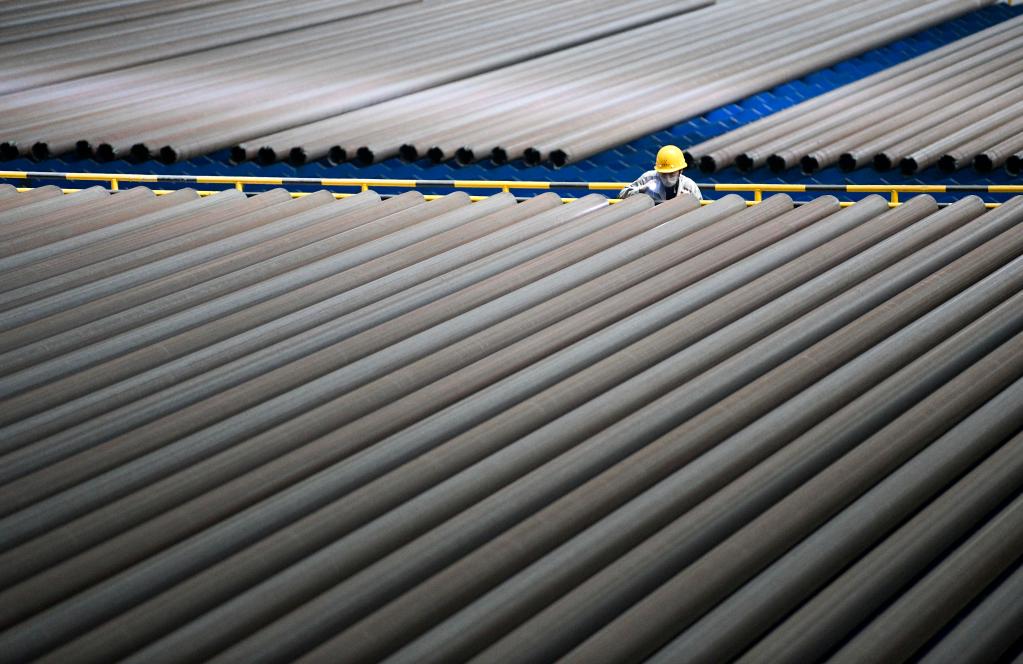 2022年4月19日,在位于承德市營(yíng)子區的承德建龍特殊鋼有限公司無(wú)縫鋼管廠(chǎng),工人檢查無(wú)縫鋼管品質(zhì)。新華社發(fā)(王立群 攝)