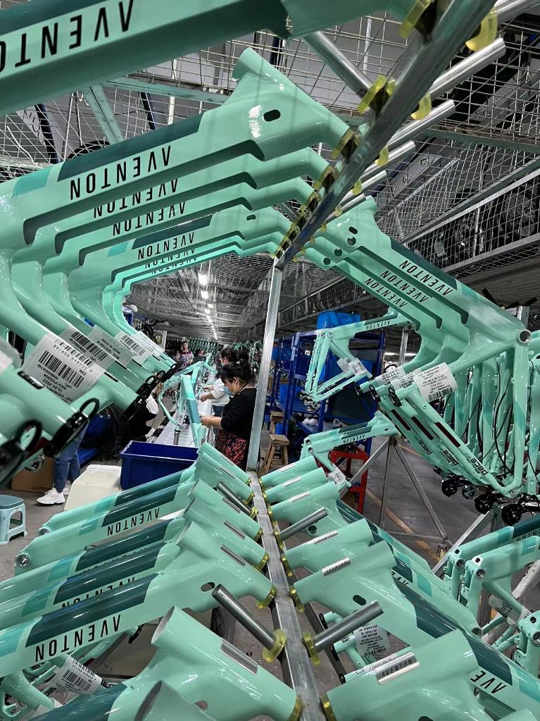 工人在為塑型好的車(chē)架貼膜。受訪(fǎng)企業(yè)供圖