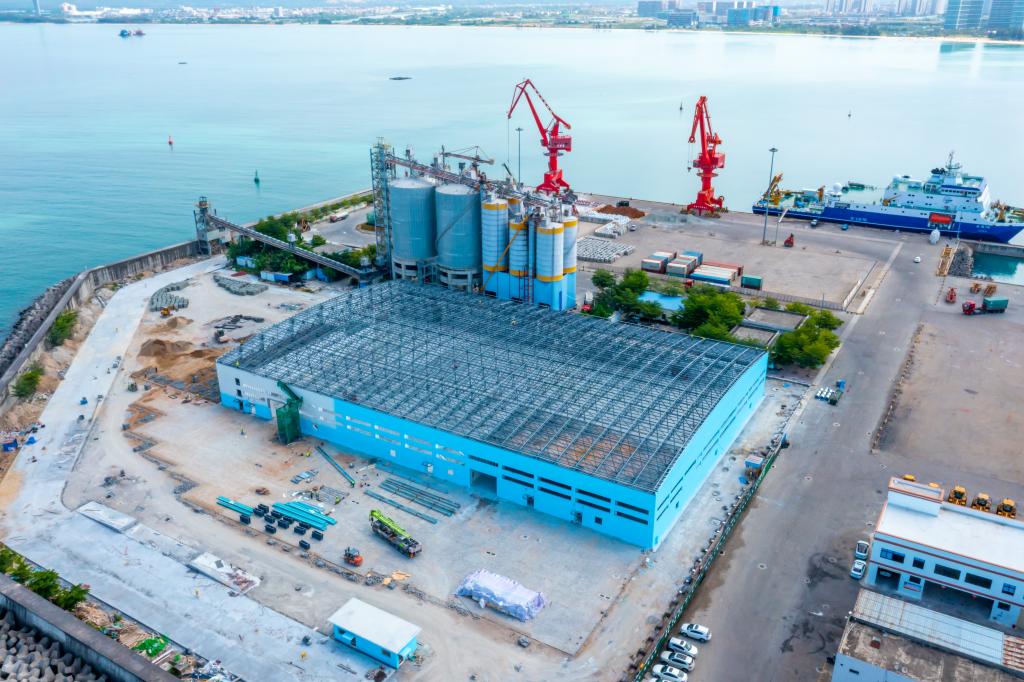 這是5月31日拍攝的三亞港南山港區海關(guān)查驗倉庫項目施工現場(chǎng)(無(wú)人機照片)。新華社發(fā)(馬征輝 攝)