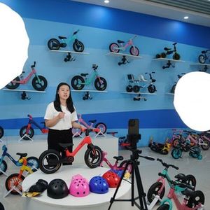 在河北童車(chē)玩具供應鏈直播基地,主播在直播銷(xiāo)售童車(chē)(新華社發(fā))