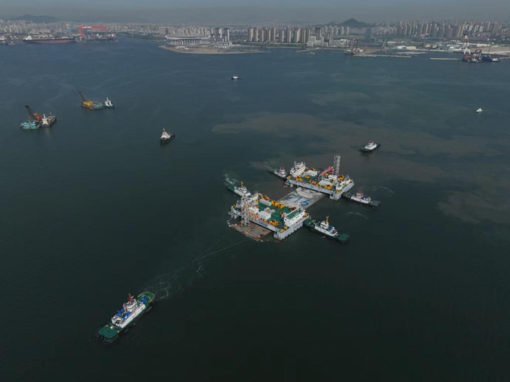 大連灣海底隧道項目E16管節施工現場(chǎng)。(受訪(fǎng)者供圖)