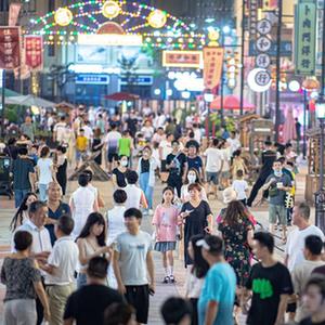 2022年7月2日,游客在武漢漢口北夜市上休閑消費。新華社記者肖藝九 攝