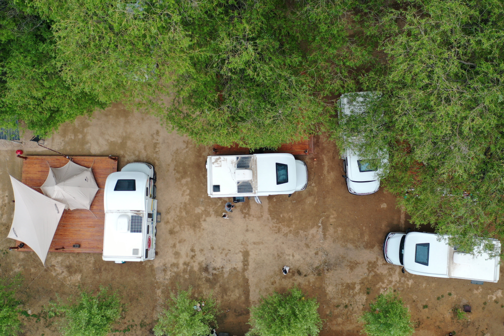 甘肅省永靖縣劉家峽魏家坡房車(chē)露營(yíng)活動(dòng)現場(chǎng)(無(wú)人機照片)。新華社記者 陳斌 5月21日攝