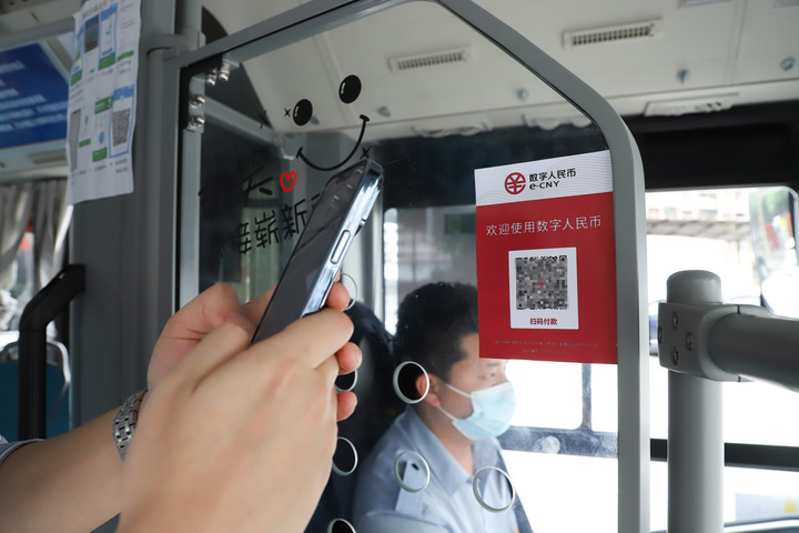 2022年4月29日,在重慶市璧山區,一名乘客使用數字人民幣付款乘坐公交車(chē)。新華社發(fā)