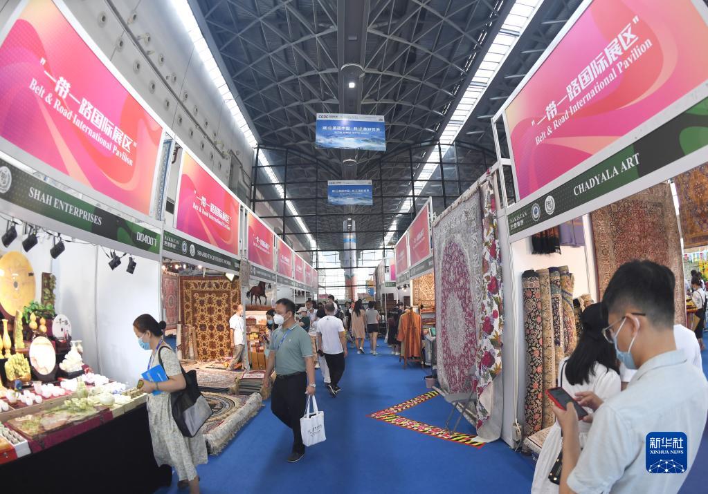 9月17日,參觀(guān)者在東博會(huì )“一帶一路”國際展區參觀(guān)。新華社記者 周華 攝