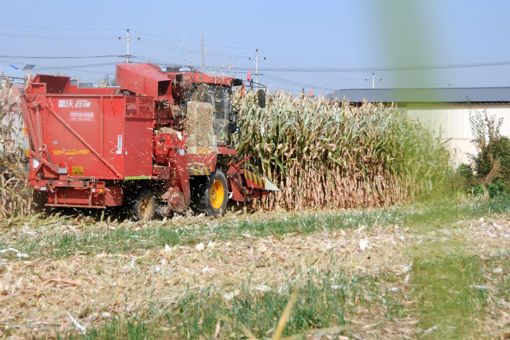 臨河區干召廟鎮黃濟村村民收割玉米。(新華社記者李云平 攝)
