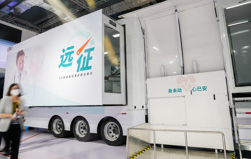 11月6日在第五屆進(jìn)博會(huì )醫療器械及醫藥保健展區西門(mén)子展臺拍攝的“遠征”5G移動(dòng)急危重癥救治單元。新華社記者丁汀 攝