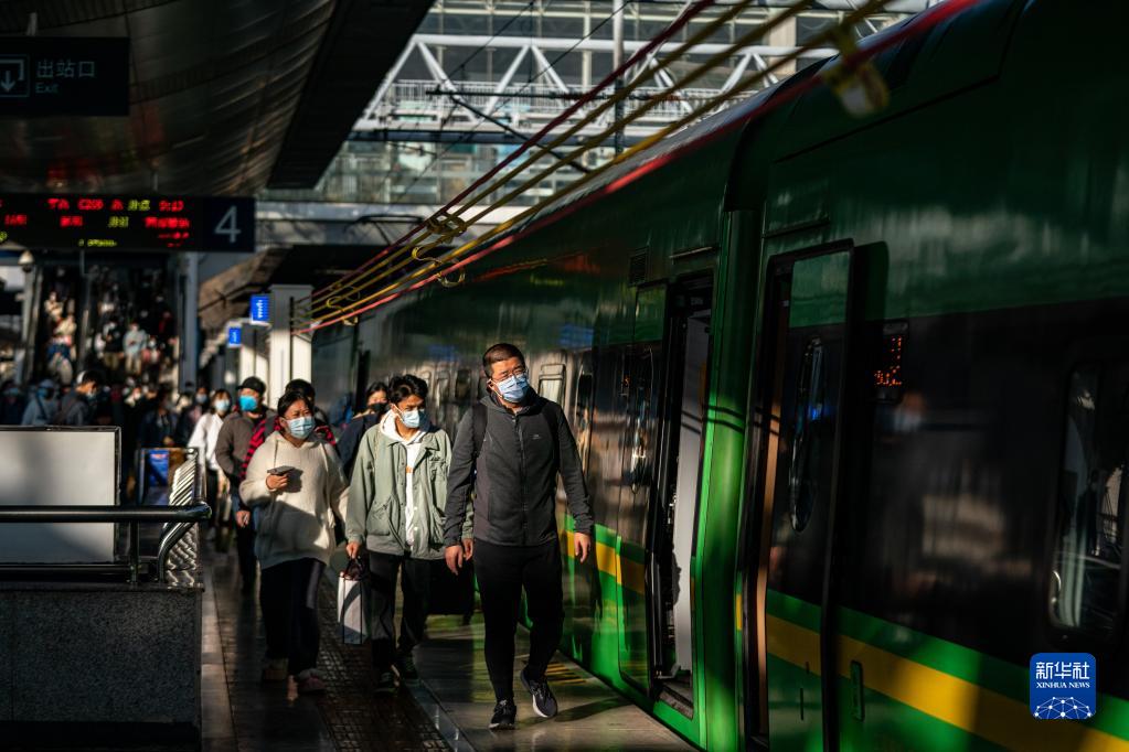 旅客在昆明站準備乘坐中老鐵路列車(chē)(2022年11月23日攝)。新華社記者 胡超 攝
