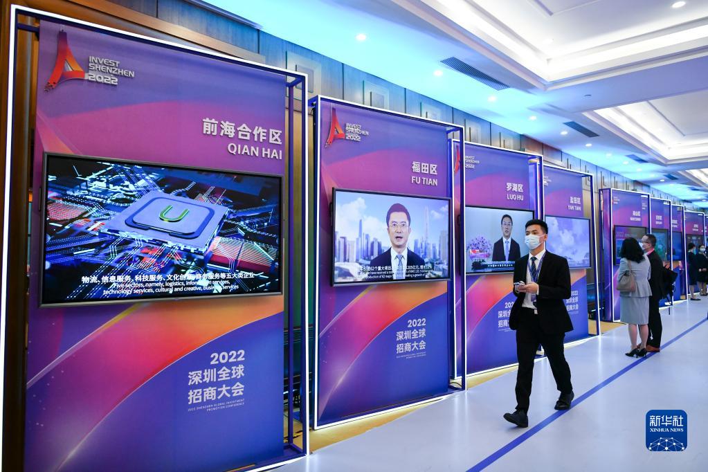 12月9日,2022深圳全球招商大會(huì )現場(chǎng)展示深圳各區招商視頻。新華社記者 梁旭 攝