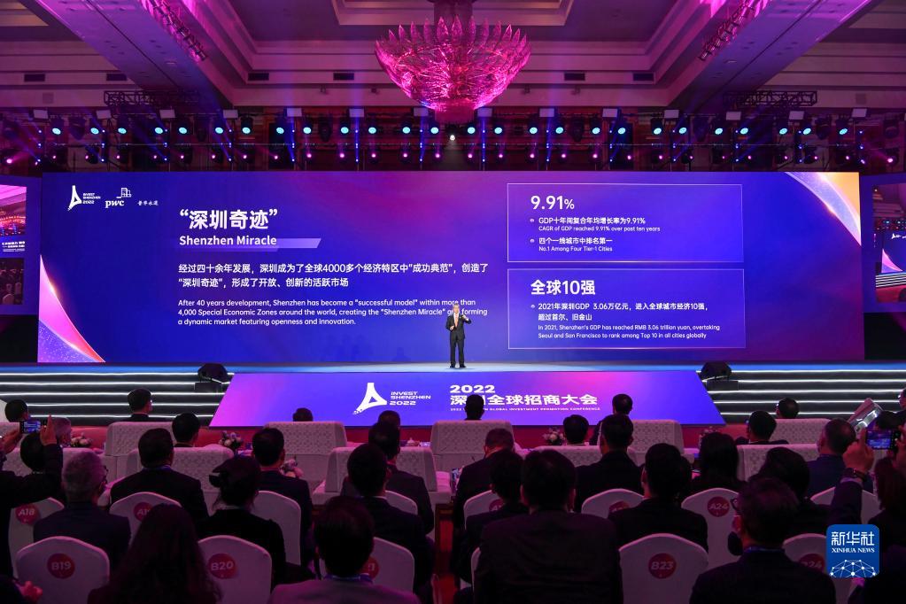 12月9日,在2022深圳全球招商大會(huì )上,普華永道中國區域經(jīng)濟及南部市場(chǎng)主管合伙人張立鈞講述“深圳奇跡”。新華社記者 梁旭 攝