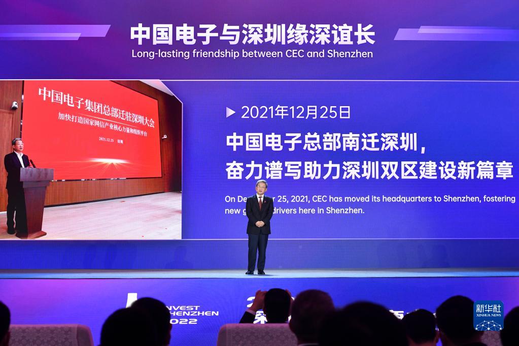 12月9日,在2022深圳全球招商大會(huì )上,中國電子信息產(chǎn)業(yè)集團有限公司董事長(cháng)曾毅進(jìn)行演講。新華社記者 梁旭 攝