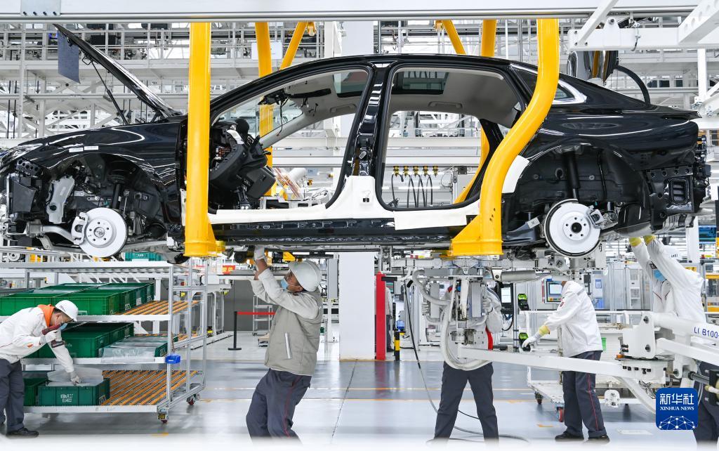 在吉林省長(cháng)春市中國第一汽車(chē)集團有限公司紅旗繁榮工廠(chǎng),工人在總裝車(chē)間的生產(chǎn)線(xiàn)上裝配車(chē)輛(2022年10月17日攝)。新華社記者 顏麟蘊 攝