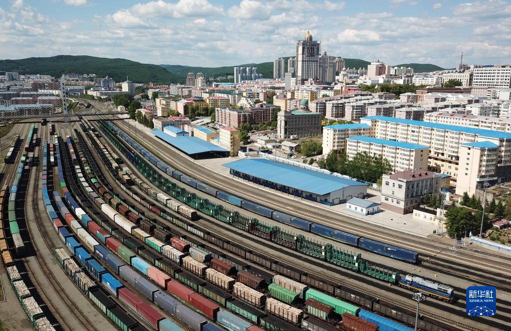 2022年6月8日拍攝的中國(黑龍江)自由貿易試驗區綏芬河片區局部(無(wú)人機照片)。新華社記者 王建威 攝