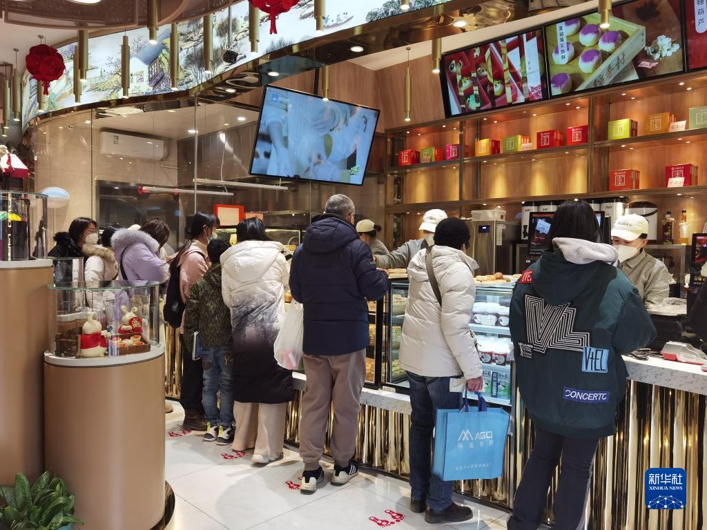 早晨8點(diǎn)剛過(guò),北京稻香村“零號店”門(mén)口已排起七八米長(cháng)隊。店里新上的“福兔獻瑞”系列兔年糕點(diǎn),手工鮮做、門(mén)店現烤,來(lái)晚了就沒(méi)有了?!颁N(xiāo)售的火爆程度超乎我們預計,今年開(kāi)年以來(lái)整體銷(xiāo)售額同比增長(cháng)了近40%,已經(jīng)恢復到2019年的水平?!北本┑鞠愦甯笨偨?jīng)理俞大治說(shuō)。
