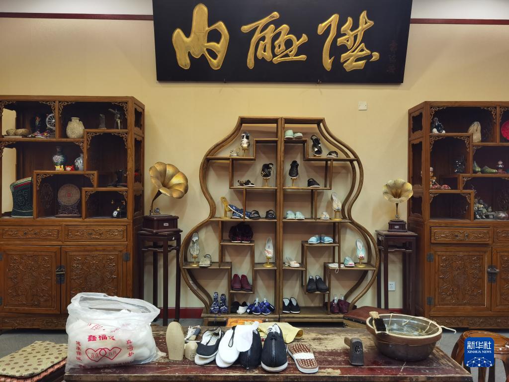 1月31日在北京前門(mén)內聯(lián)升總店內拍攝的手工布鞋。 新華社記者 謝?,?攝