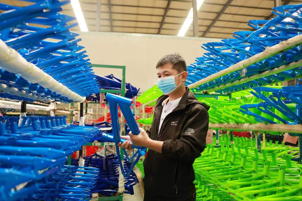 這家公司有專(zhuān)門(mén)研發(fā)設計的團隊,產(chǎn)品根據客戶(hù)要求設計、生產(chǎn),目前已研發(fā)出160多種款式,自行車(chē)輪直徑從14英寸到27.5英寸,應有盡有。胡凡剛說(shuō),公司生產(chǎn)的自行車(chē)100%經(jīng)過(guò)檢測,完全合格后再裝柜發(fā)貨。2022年出口8萬(wàn)多輛,預計今年可突破10萬(wàn)輛。