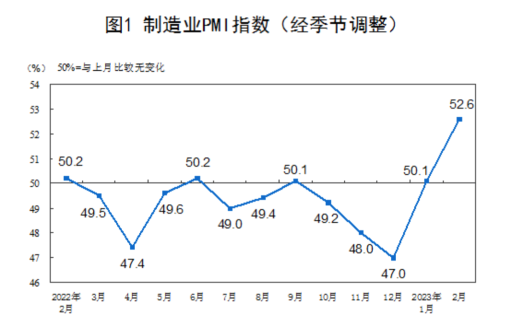 國家統計局服務(wù)業(yè)調查中心、中國物流與采購聯(lián)合會(huì )1日發(fā)布數據,2月份,中國制造業(yè)采購經(jīng)理指數(PMI)為52.6%,比上月上升2.5個(gè)百分點(diǎn),連續2個(gè)月位于擴張區間。這一先行指標顯示,我國經(jīng)濟運行穩步回升。