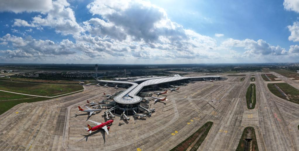 這是2021年11月20日拍攝的??诿捞m國際機場(chǎng)二期項目(無(wú)人機照片)。新華社記者 楊冠宇 攝