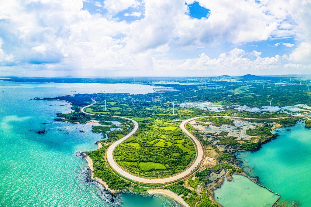 這是2022年10月6日在海南儋州峨蔓火山海岸拍攝的海南環(huán)島旅游公路(無(wú)人機照片)。新華社記者 蒲曉旭 攝