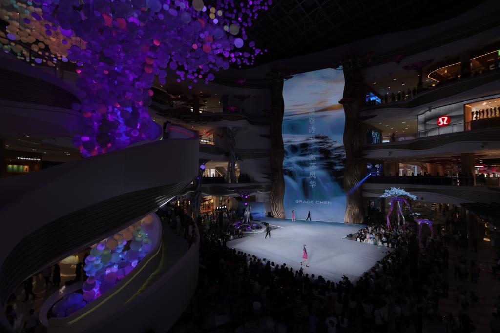 新華社???月12日電(記者牛夢(mèng)彤 夏天)模特們逐一從高27米、瀑布般的大屏幕前走向T臺中央,海底傘狀植物和水母形態(tài)的布景環(huán)繞四周,第三屆中國國際消費品博覽會(huì )(以下簡(jiǎn)稱(chēng)“消博會(huì )”)時(shí)裝周在??趪H免稅城舉辦的開(kāi)幕大秀極具想象力、讓人仿若置身海底奇幻秘境。