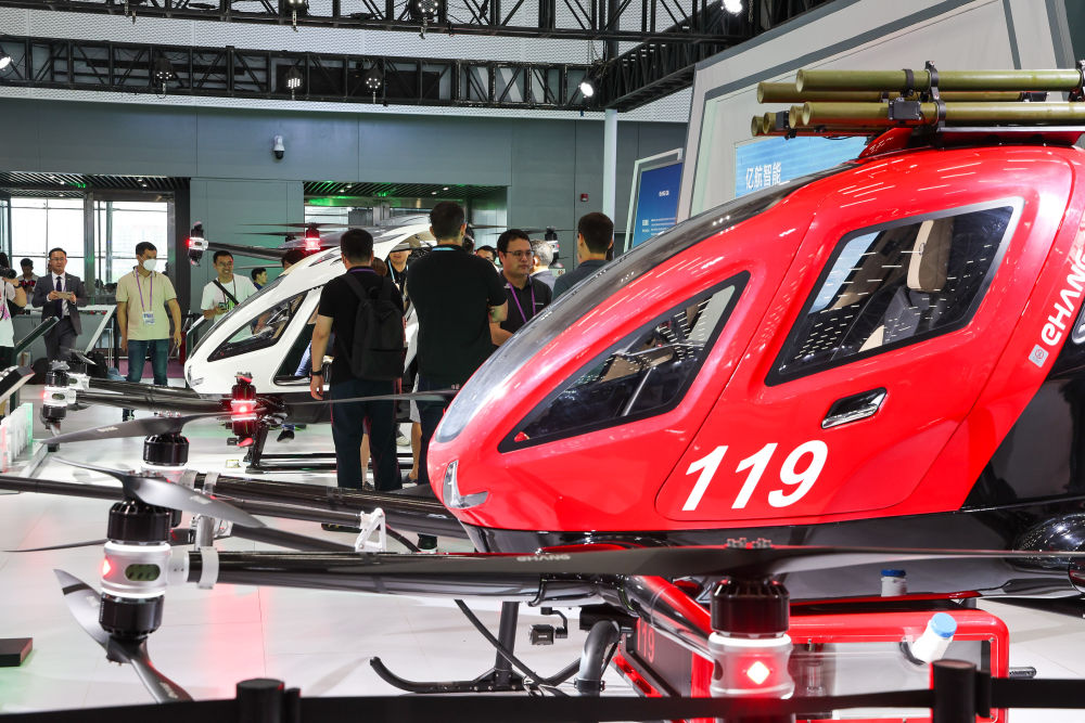 這是廣交會(huì )新設置的新能源及智能網(wǎng)聯(lián)汽車(chē)展區展示的億航載人和運輸無(wú)人機(4月15日攝)。新華社記者 劉大偉 攝
